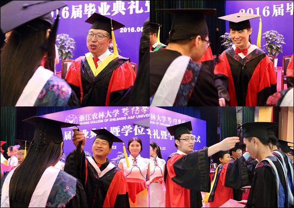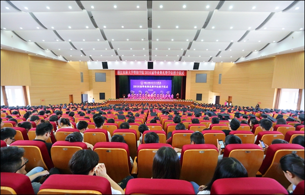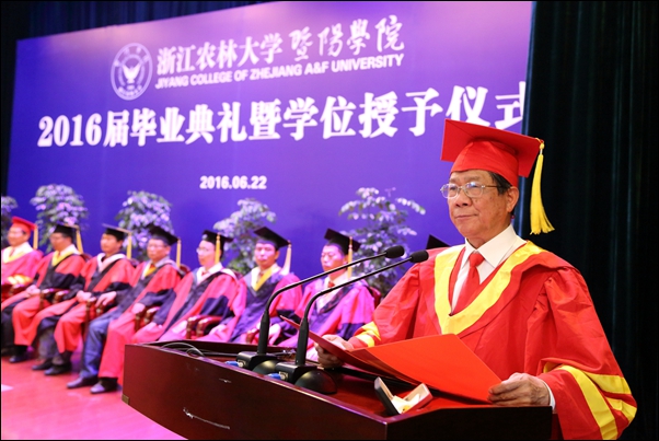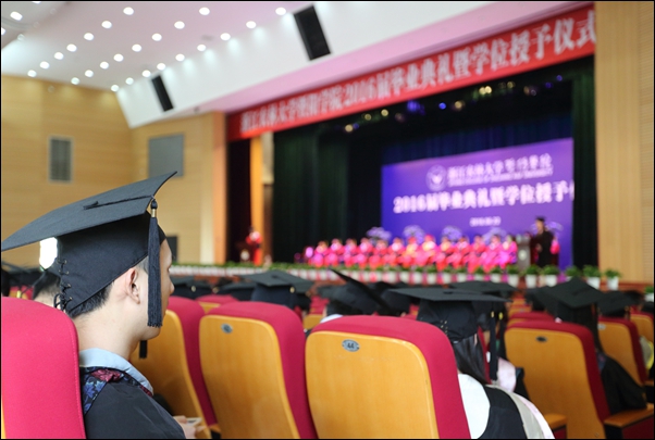 副院长修树东宣读了浙江省教育厅和williamhill官方网站英国威廉希尔公司关于表彰2016届优秀毕业生的决定。主席台就座领导为学院优秀毕业生代表颁发荣誉证书,为毕业生代表颁发毕业证书和学位证书,扶正流苏。