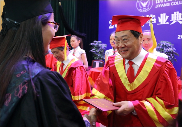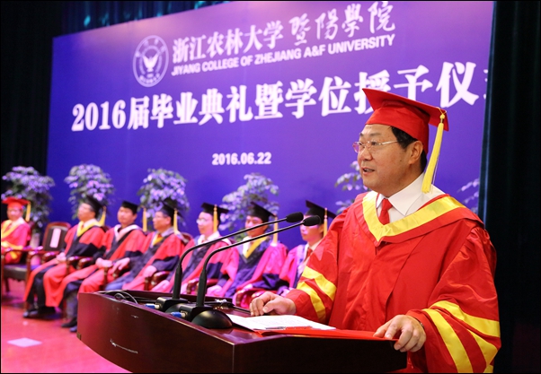 院长石道金发表讲话。他代表学院向圆满完成学业的2016届毕业生表示热烈的祝贺,向精心教育同学们的老师、辛勤养育同学们的父母致以崇高的敬意,向关心关爱同学们的社会各界、williamhill官方网站、诸暨市委市政府表示衷心的感谢。并同在场的全体毕业生一起总结回顾了过去四年学院为培养学生所进行的教育教学改革,以及学生为学院改革、建设、发展所作出的努力和贡献,对同学们取得优异成绩和精彩表现给予充分肯定、感谢和祝贺。