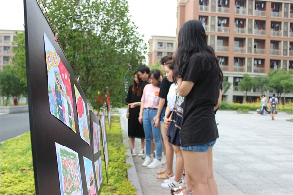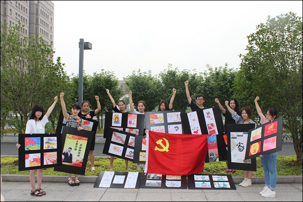在现场,记者看到,展览分为“学系列讲话——家风篇、诚信篇”、“优秀党员风采展”、“庆祝建党95周年”等三个区域。“学系列讲话——家风篇和诚信篇”分别以习近平总书记的“家庭是社会的基本细胞,是人生的第一所学校”和“人而无信,不知其可也”为引,以浦江郑氏和诚信考试为素材,以“图说”的形式进行生动诠释。“优秀党员风采展”展出了该党支部四位学生党员的风采,他们分别获得过暨阳英才奖学金、中国包装创意设计大赛二等奖,中国大学生计算机设计大赛省级一等奖、浙江省第三届大学生摄影竞赛非专业组三等奖等诸多荣誉,在分享感悟的同时将各组获奖作品也进行了展示。“庆祝建党95周年”区域则呈现了上百副由党员和入党积极分子合力手绘的庆祝海报,以笔墨丹青之语共贺佳节。“这么一个展览,看似简单,实则教育了我们很多,我们既要学习党的先进理论知识,也要向身边的榜样看齐。在手绘的过程中,我们切身体会到了榜样的力量和自己身上的责任和担当。”该支部成员姚文露和项杰对记者说。