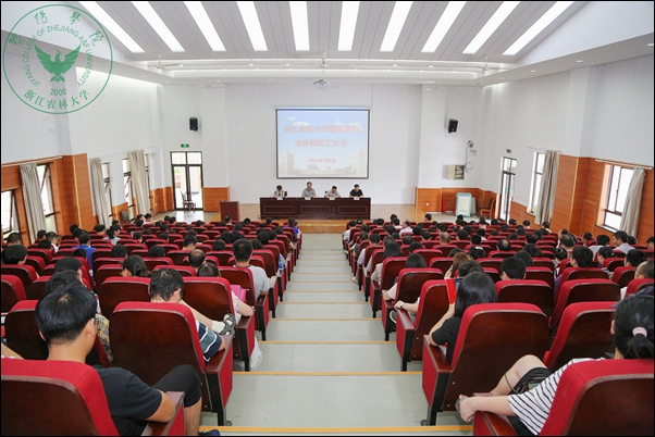 本网讯 7月8日下午,学期即将结束之际,学院组织召开全体教职工大会,对学院上半年的工作进行总结,对暑期和下半年的工作作总体部署。院领导石道金、修树东、李文莉、张晓优出席大会。会议由副院长李文莉主持。