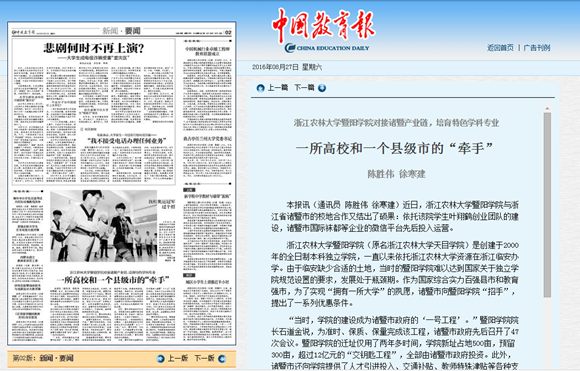 《中国教育报》:一所高校和一个县级市的“牵手”