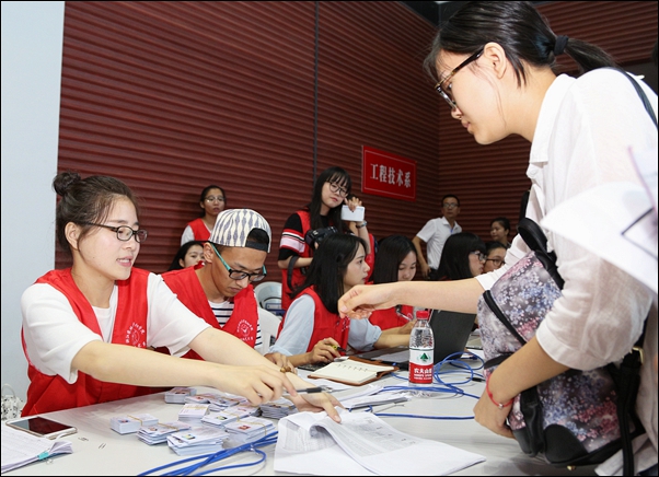 本网讯 柔风送爽,微雨暨阳;泱泱校园,菁菁新颜。9月11日,2016级新生背起沉甸甸的行囊,怀揣着梦想和激情,相聚在英国威廉希尔公司,以饱满的精神状态,开启人生新篇章。广大教职员工和学生志愿者根据学院的周密部署,用贴心关怀和细致服务迎接着2016级新生的到来,整个报到现场忙而不乱,井然有序。