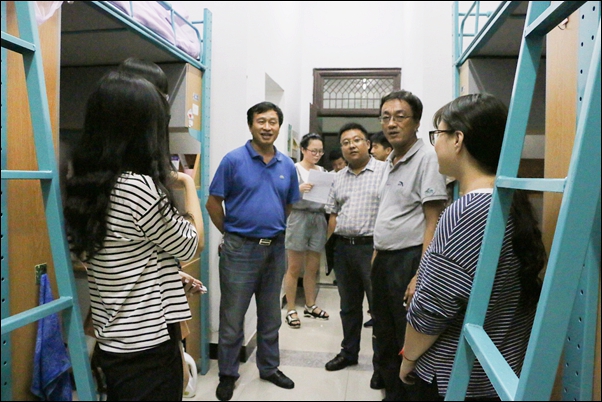 9月11日晚上,院领导石道金、寿韬、修树东、李文莉、张晓优在各系相关负责人的陪同下深入学生寝室,亲切看望2016级新生。