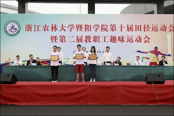 本届运动会共评选出赖伟波等12名优秀运动员。经济管理系、工程技术系、生物环境系分别获得男女团体总分前三名,工程技术系、技能+学历、园林艺术系分别获得男子团体总分前三名,经济管理系、生物环境系、园林艺术系分别获得女子团体总分前三名。同时,生物环境系获得“体育道德风尚奖”,园林艺术系获得“最佳组织奖”,人文系获得“顽强拼搏奖”。后勤保障部,工程技术系,图书馆、体育中心和实验中心分别获得教职工趣味运动会团体前三名。