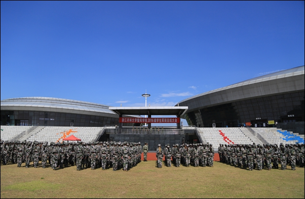 军训团政委修树东在大会上发表讲话。他希望同学们继续坚持和发扬艰苦奋斗,勇于拼搏,刻苦训练的精神,带着饱满的热情、顽强的毅力、必胜的信心投入到今后的学习、工作和生活中去,充分发扬“求真敬业,经世致用”的学院精神,把军训成果转化为优良的学风、校风,锐意进取,开拓创新,绽放青春风采,迎接美好未来。