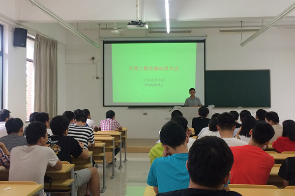 近日,工程学院在理工1219召开专利工程实施动员大会,院长彭樟林,机电系全体教师、机电系2017级全体学生参加会议。