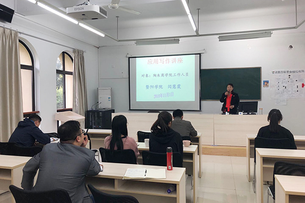 人文学院闫慧霞老师就公文写作等内容做了详细的分享。针对应用文、新闻、通知以及计划、总结等各种不同文种,闫老师对其书写格式、行文规范及组成部分等分别做了详细的讲解,她以幽默风趣的语言、以详实的案例,阐述了公文写作应注意的行文规范,理论与实际训练相结合,讲授了一堂实用性超强的课程。