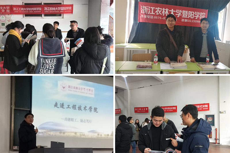 党总支书记林爱广带队,系负责人、专任教师共同参与,组队赴宁波城市职业技术学院、浙江工商职业技术学院、浙江工业职业技术学院等往年威廉希尔官网录取考生较多的、相关专业联系较密切的高职高专院校开展现场宣传,开展专题宣讲,为考生答疑解惑。
