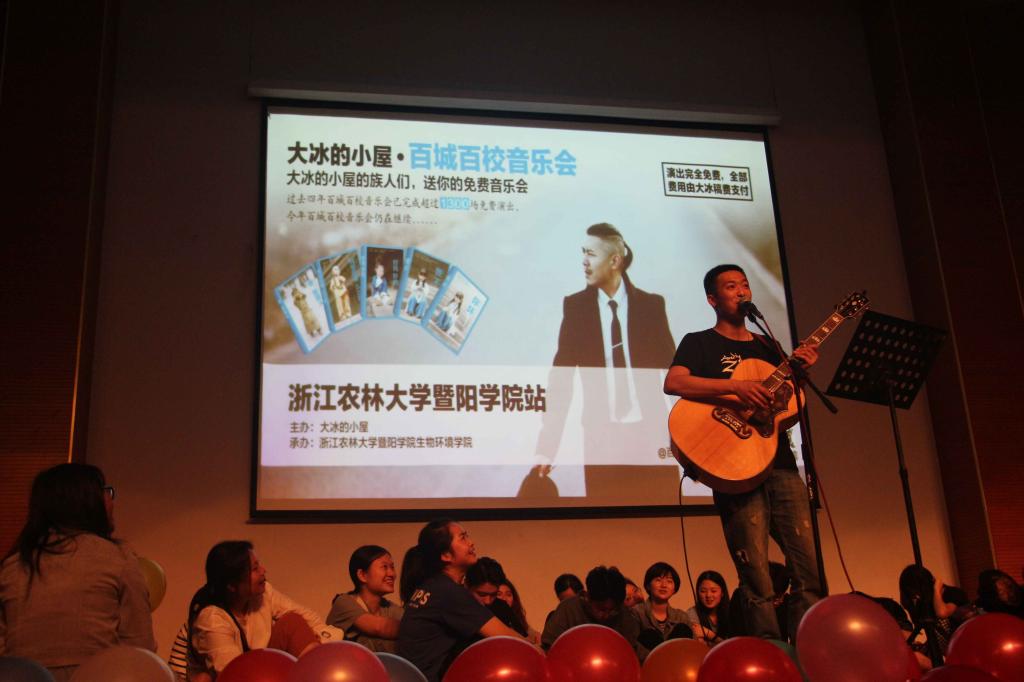 4月25日晚,“大冰的小屋·百城百校音乐会——暨阳站”在威廉希尔官网明珠报告厅举行。大冰,著名畅销书作家,电视台主持人,歌手。为了回馈他的读者们,大冰和他的朋友们在全国每个省份各个高校开展百城百校音乐会。此次暨阳站音乐会是学校里的读者们和大冰的小屋一次良好的互动。该音乐会吸引了全院师生的目光,活动当晚,现场气氛热烈,全场座无虚席,部分没有座位的观众甚至坐在舞台上和阶梯上,师生反映良好。