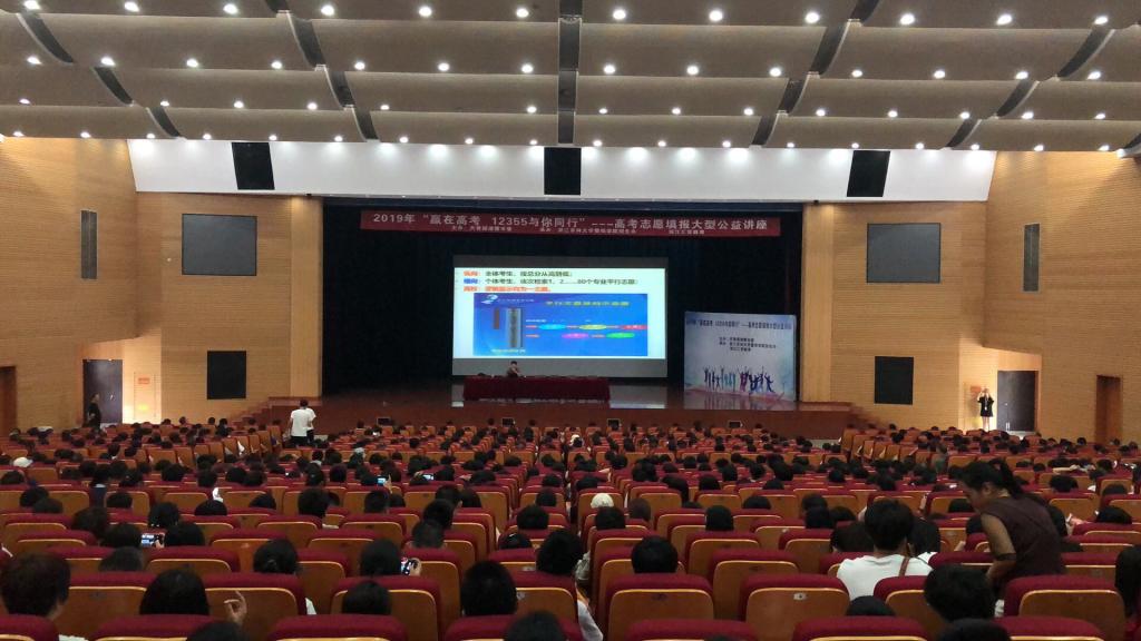 6月16日上午,2019年高考志愿填报大型公益讲座在学院活动中心举行。本次活动由学院招生办公室承办,1300多位考生、家长相聚学院活动中心,座无虚席,活动围绕高招政策解读和考生报考公益咨询等方面展开。