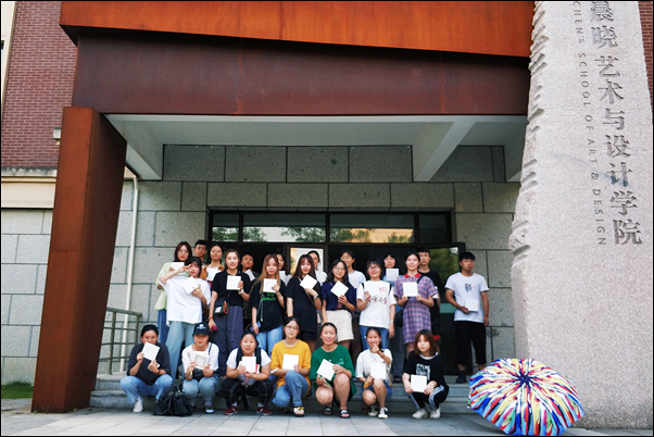 在迎新报到现场,晨晓艺术与设计学院每一位2019级新生都拿到了一份特别的入学礼物——一把订制的雨伞。暑假期间,在赠送新生什么样的入学礼物的问题上,学院领导班子和专业老师经过多次研究、讨论,决定将晨晓院长代表画作的色彩元素,融入到实用的生活用品——雨伞中,多次修改设计稿后,最终制作完成了这份新生礼物。当天的校园里,炫丽的雨伞点缀着角角落落,处处都是一道靓丽的风景。