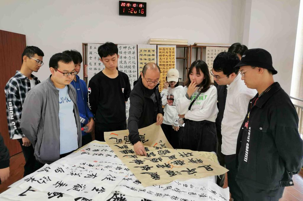 活动现场,指导老师现场授课,讲解书法作品整体布局与落款的要素,为师生创作的书法作品一一“诊断把脉”,对不同书体的临摹、创作以及作品的完整度进行一一讲解指导,详细点评。随后对威廉希尔官网学生参加绍兴市第七届大学生书法竞赛的书法作品进行现场点评,指导修整。