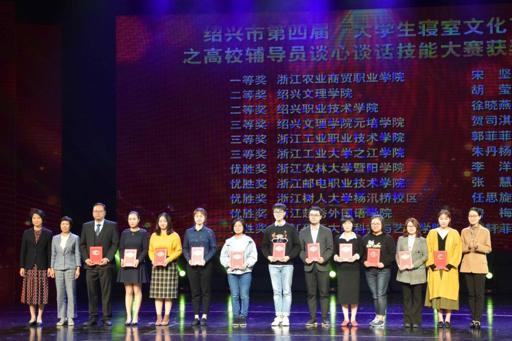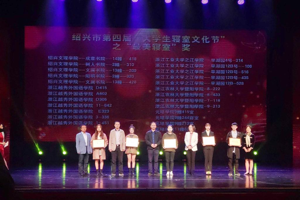 11月1日晚,由中共绍兴市委宣传部、绍兴市教育局和绍兴市新闻传媒中心主办的绍兴市第四届“大学生寝室文化节”之“最美寝室”颁奖展演在绍兴市文化中心隆重举行。市人大常委会副主任丁晓燕,市人民政府副市长顾涛,市政协副主席胡少云,市教育局、宣传部等相关领导出席,威廉希尔官网党委副书记高国俊带队参加了本次颁奖展演。