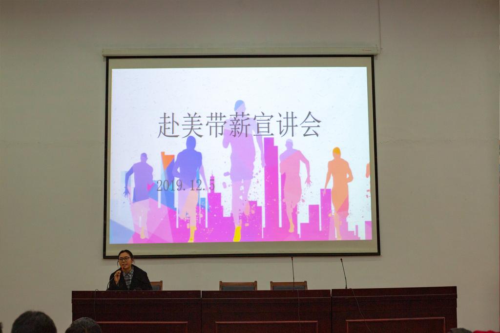 随后,朱俊康对暑期赴美带薪实习项目做了详细的说明,他从项目详情、项目收获及申请流程等进行了介绍,同时分享了参与赴美带薪实习项目同学的经历与收获。