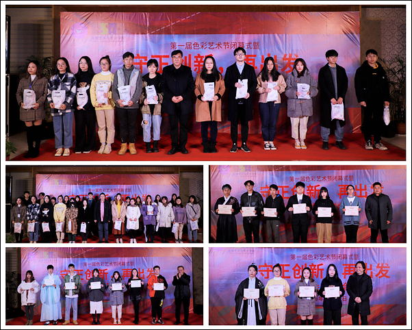 闭幕式上对在学院第一届色彩艺术节系列活动和院级以上各类学科竞赛获奖学生进行了表彰,出席领导和嘉宾为获奖学生颁发了荣誉证书和奖品。