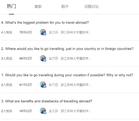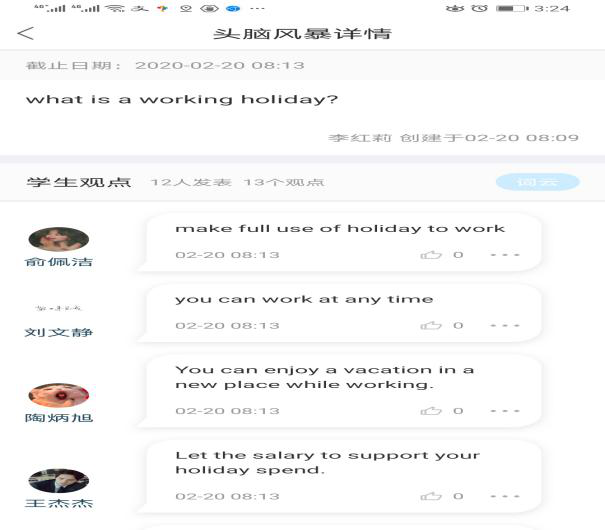 网络平台教学与传统的实际课堂教学模式天差地别,各种网络资源可以平行并用,加速了学生对于网络资源的快速认知和接受。由于网络空间同时兼有的开放与隐蔽功能,使中国学生也展现了原本不愿意透与人知的关于自尊的一面。如网络平台的课堂答疑环节,传统课堂中的学生害怕提问,害怕自己的知识接受度公示于人,而现在的网络课堂教学使学生大大放松,积极提问,即便是课堂教学过程中来不及记下的笔记也会再次询问。再如:平日老师经常就教学进度、教学内容或者教学计划与学生进行细致沟通,但往往得不到全面深入的回应,而现在,通过网络平台的投票环节,任课教师可以相对更容易更全面地掌握其真实境况。(人文学院公外课程组--龚艳萍)
