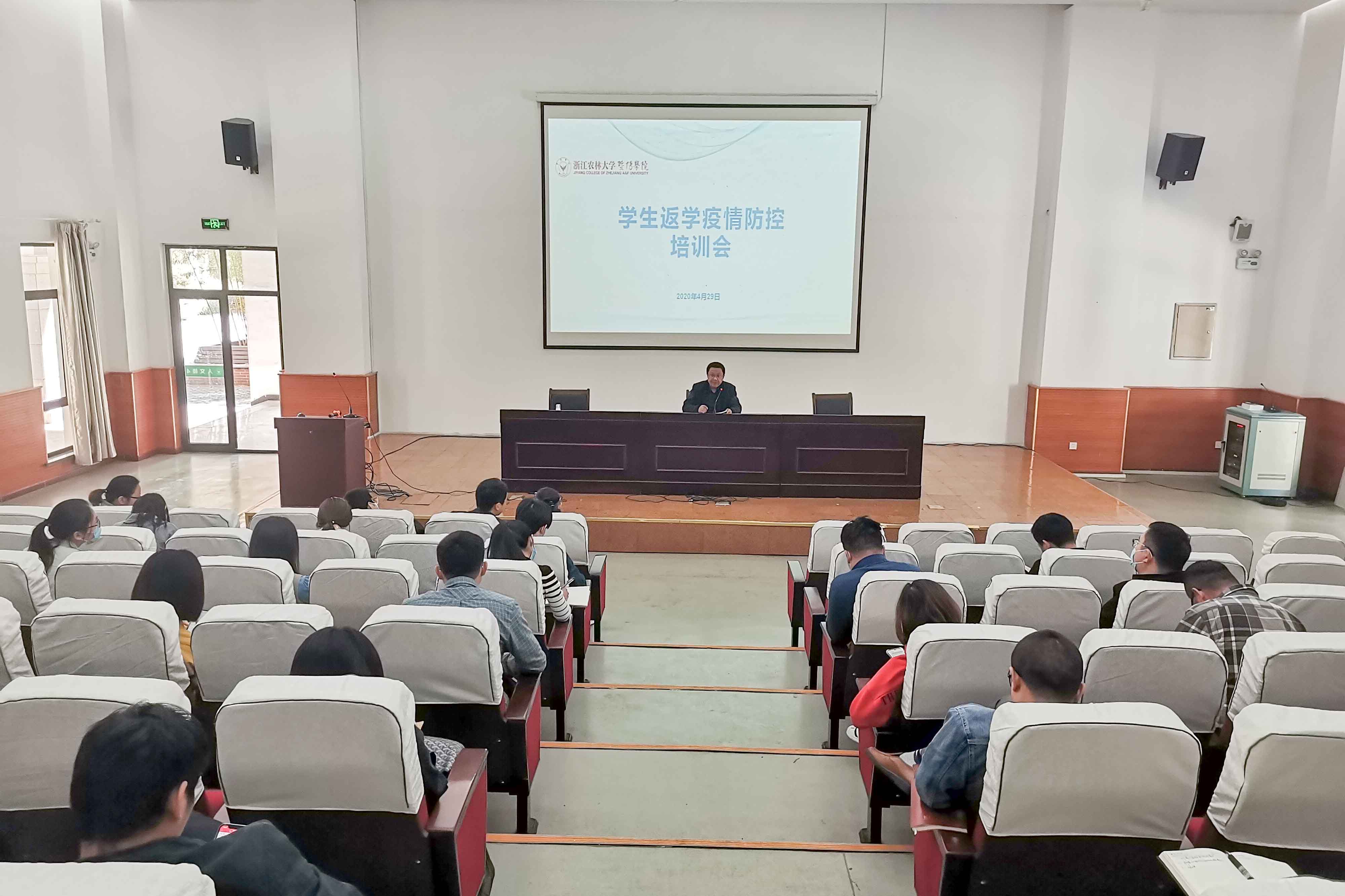 4月29日,学院召开学生返学疫情防控工作培训会,学院党委副书记高国俊出席会议并讲话。学院驻校健康指导员,各二级学院党总支书记、副书记,教务部、学工部、团委、公共保障部负责人,全体辅导员、学工部成员,学生社区生活指导员、公寓值班员参加会议。学工部主任徐春霞主持会议。