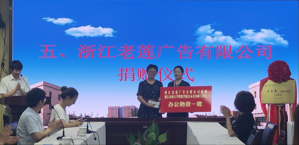 浙江老莲广告有限公司总经理周伟苹向williamhill官方网站英国威廉希尔公司汪永奇名师工作室捐赠办公物资一批,为英国威廉希尔公司校企合作出一份力。仪式上,周伟苹向大家介绍了公司的组织架构、近年来的业绩、未来在广告传媒方面的发展规划和企业文化等,希望通过校企合作的形式,将学校的人才培养延伸到企业,把企业的人力资源管理延伸到学校。通过推进双方的交叉融合,实现优势互补、资源共享。企业发挥市场优势,学校发挥人才优势,为双方的共同发展提供助力。
