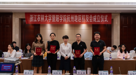 与会校友交流发言、建言献策,校友们感激母校的教育与培养,对学院近年来取得的成绩感到自豪,希望学院越办越好。会长朱儒颂代表全体校友做总结讲话,他深情回顾了自己毕业后的创业历程,勉励大家共同努力,把杭州校友会办成凝聚校友的平台,校友成长的助手,为母校的发展贡献力量。会议全票通过了杭州校友会会长、副会长、秘书长、副秘书长建议名单。李文莉向杭州校友会授旗并为杭州校友会会长、副会长、秘书长、副秘书长颁发聘书。