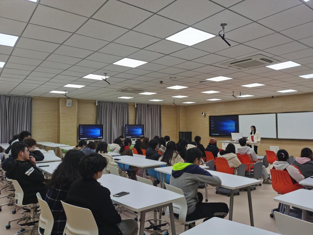沙龙现场气氛热烈,同学们注目倾听。李秋瑾分享了她学生时期的个人经历,以及到职场新人的蜕变过程。她从实际出发,通过案例讲述自己如何实现第一笔订单,如何解决客户难题并为公司创造利益,让在场同学受益匪浅。