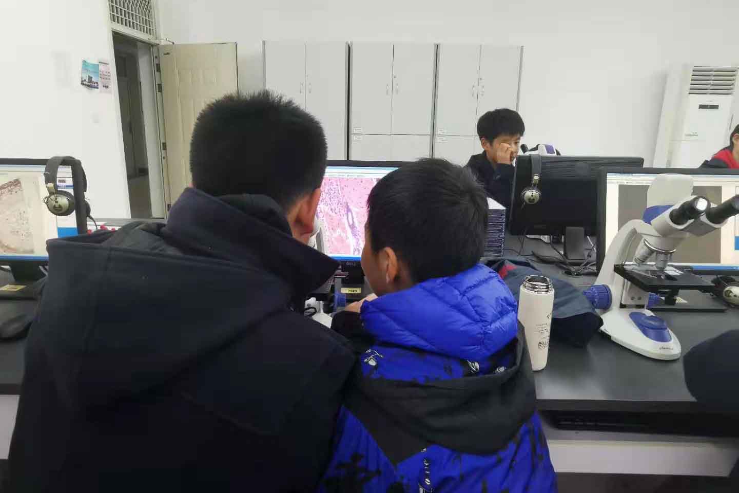 在电子显微镜实验室,马丹丹老师详细讲解了电子显微镜的构成及操作方法。听完讲解后同学们迫不及待地进行了显微镜的操作,装片、上夹、调整位置。洋葱切片和马尾松切片展现出不同的细胞结构,同学们快乐地体验着微观世界的奥秘。