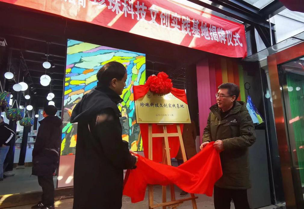 袁志刚、刘训林共同为“珍珠科技文创实践基地”进行了揭牌。