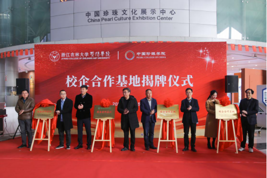 12月25日上午,中国珍珠学院校企合作基地揭牌仪式在诸暨华东国际珠宝城举行。williamhill官方网站英国威廉希尔公司副院长袁志刚、诸暨市山下湖镇党委副书记蔡鲁晟,校企合作企业代表出席了仪式。学院相关职能部门、二级学院负责人,中国珍珠学院产业班全体师生参加了揭牌仪式。