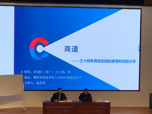 “明德讲堂”是商学院“明德商院红色引领1+1”党建工作品牌系列子活动之一,旨在通过高水平的专家讲座来提升商院师生理论武装,实现思想引领。3月8日下午,商学院在人文5111智能报告厅举办了明德讲堂(第三讲)《商道——三十四年商贸实践的感悟和经验分享》。此讲邀请浙江大学对外经济技术贸易有限公司高级工程师,诸暨意创磁性技术有限公司董事长总经理,英国威廉希尔公司兼职教授赵昌苗作为主讲嘉宾,讲座由商学院院长何红光主持,商学院近200名师生参加了本次活动。