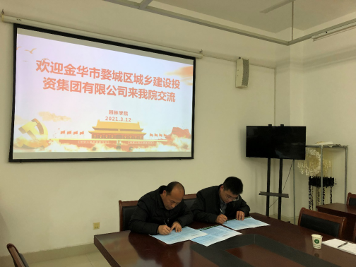 会上,李文莉先介绍了学院的概况,迁址办学情况。白尚斌代表园林学院介绍了学院建设和发展情况,并对集团公司一行来院座谈交流表示欢迎。贾博文介绍了金华市婺城区城乡建设投资集团有限公司、双成建设管理有限公司近年来的建设和发展情况。同时,双方就将来人才招聘、合作进行科研项目申报等方面进行洽谈,并初签了战略合作协议。