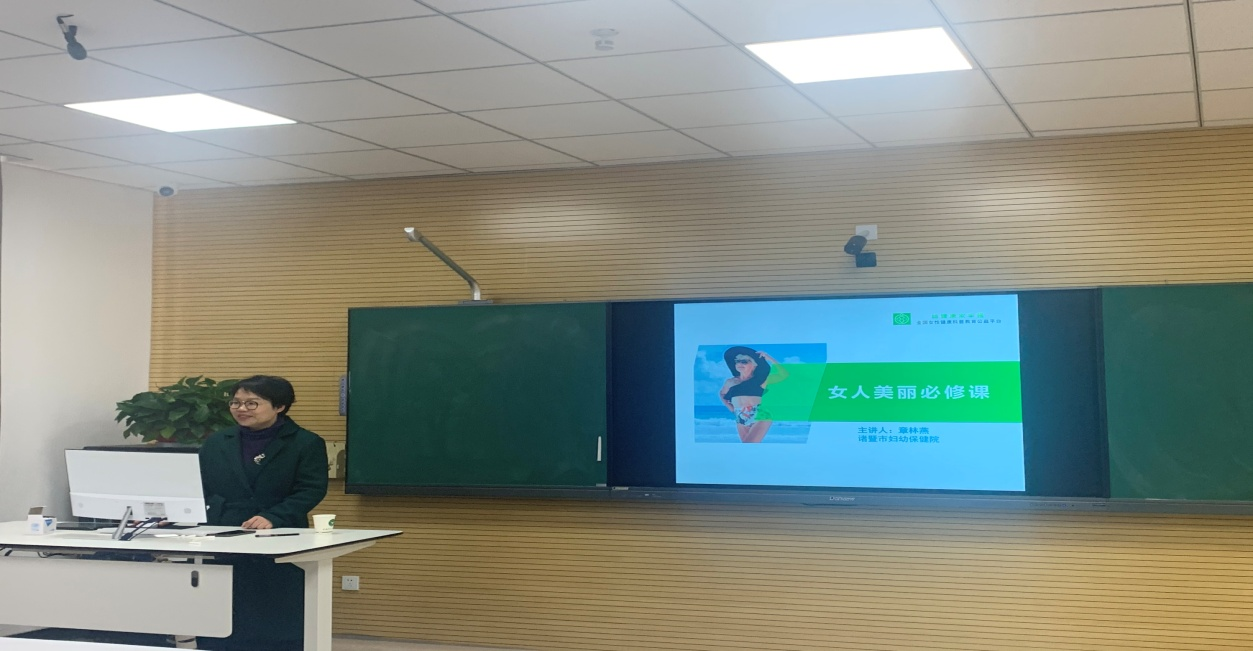 3月12日下午,学院妇联、工会邀请诸暨市妇幼保健院副主任医师章林燕在理工1505举办了《女人美丽必修课》讲座。章林燕主任的讲座分为三个方面:女性日常健身、如何正确看待女性体检报告上的问题、女性更年期表征及应对。讲座过程中还与老师们做了各种互动,让老师们切身体会健身的重要性。