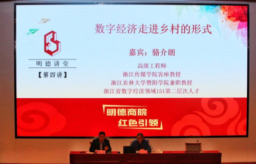 “明德讲堂”是商学院“明德商院红色引领1+1”党建工作品牌系列子活动之一,旨在通过高水平的专家讲座来提升商院师生理论武装,实现思想引领。4月1日下午,商学院在人文5111智能报告厅举办了明德讲堂(第四讲)《数字经济走进乡村的形式》,邀请浙江传媒学院客座教授、williamhill官方网站英国威廉希尔公司兼职教授、浙江省数字经济领域151第二层次人才骆介朗作为主讲嘉宾,讲座由商学院党总支书记潘小承主持,商学院近200名师生参加了本次活动。