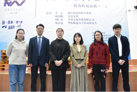 放飞青春梦想,成就出彩人生。4月8日下午,人文学院在图书馆报告厅举行出彩新青年论坛第十五讲,邀请三位优秀毕业生作客论坛,共话学业成长与事业发展。人文学院院长刘伯茹,党总支副书记石杭科,浙江纳森律师事务所、法学063班校友李正,万安集团、公共事业管理161班校友杨淑贻,华东师范大学在读研究生、英语152班校友郑若添,学工办辅导员及学生代表共200余人参加活动。