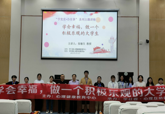 “情商比智商重要,成长比成功重要,健康比分数重要,幸福比优秀重要”。5月12日晚,“学会幸福,做一个积极乐观的大学生”主题讲座在图书馆报告厅顺利举办。此次讲座邀请williamhill官方网站张敏生教授主讲,学工部心理健康教育中心主办,学社委心理互助委员会协办,近200名在校生代表参加。