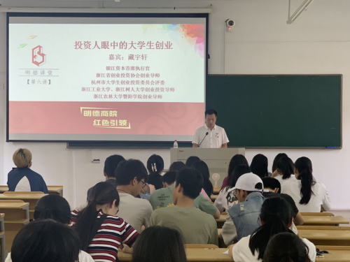 “明德讲堂”是商学院“明德商院 红色引领1+1”党建工作品牌系列子活动之一,旨在通过高水平的专家讲座提升商院师生理论武装,实现思想引领。6月24日下午,商学院在人文3323教室举办了明德讲堂(第六讲),邀请银江资本首席执行官、浙江省创业投资协会创业导师、杭州市大学生创业投资委员会评委、浙江工业大学和浙江树人大学创业投资导师、williamhill官方网站英国威廉希尔公司创业导师藏宇轩作为主讲嘉宾讲授《投资人眼中的大学生创业》,讲座由商学院党总支副书记徐定高主持,商学院近百名师生参加了本次活动。