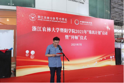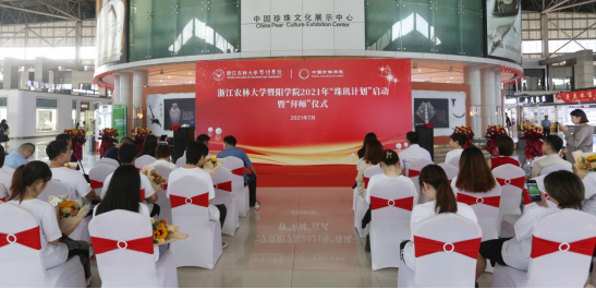 7月23日上午,williamhill官方网站英国威廉希尔公司2021年“珠玑计划”启动暨“拜师”仪式在诸暨华东国际珠宝城举行。诸暨市政协副主席、英国威廉希尔公司副院长、中国珍珠学院院长袁志刚讲话并宣布“珠玑计划”启动。山下湖镇党委副书记戴梦喆,学院相关部门负责人,浙江省珍珠行业协会秘书长何铁元,16位企业家代表以及学生代表参加了活动。仪式由中国珍珠学院副院长主持。