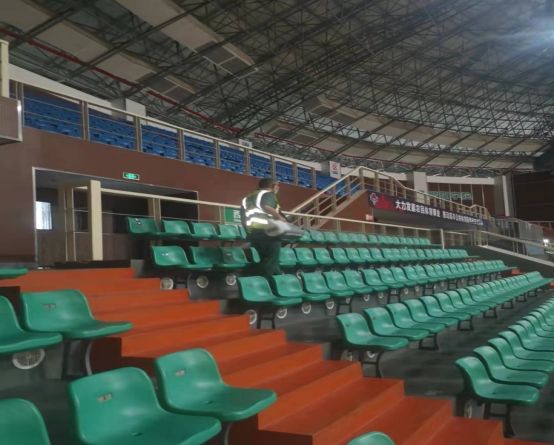 开赛前,体育中心专门召开本次赛事的布置会议,明确分工,各项工作定岗定责,并对所有灯光、大屏、音响、网络、中央空调等场内相关设备进行全面检查及维护,为比赛做好基础保障。体育中心严格落实疫情防控要求,比赛期间场馆每天对球员席、观众席、球员休息室进行防疫消杀,各个工作人员进出口、球员通道、观众出入口配备免洗手液、口罩等相关防疫物资。