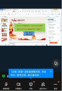 会议结束后参会党员就“如何学习贯彻党的十九届六中全会精神,践行新时代青年的使命责任”,在群里发表心得体会。