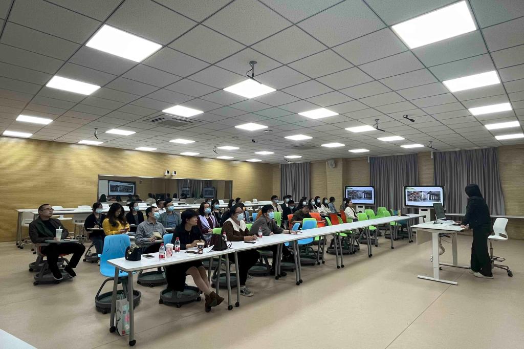 连燕华老师介绍了思政微课大赛大致情况,就参赛心路历程进行了分享:立意要有层次感,结合热点以小见大,善于以小切入点展现大思政;文稿要做到用词准确精彩,善于抓住目光,给人留下深刻印象;呈现要注重多种形式相结合,提高现场宣讲的感染力。另外,她用“台上一分钟,台下十年功”表达了辅导员认真备赛的态度和千锤百炼的意志。