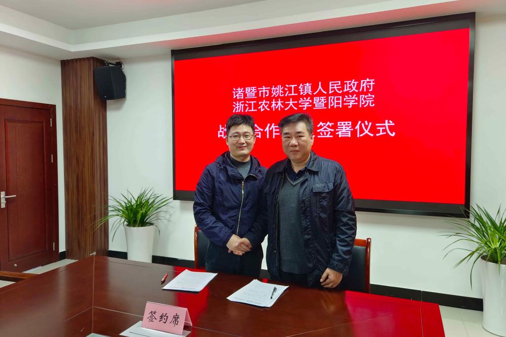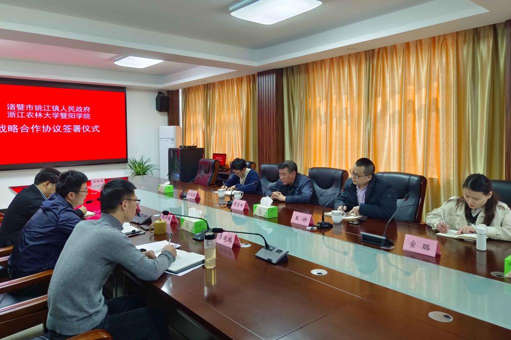 3月24日,学院与姚江镇人民政府签订全面战略合作协议。仪式由姚江镇党委委员鲁乾鹏主持,诸暨市政协副主席、学院副院长袁志刚,姚江镇党委书记周少雄,姚江镇党委副书记、镇长葛高烽出席,学院社会合作部、人文学院负责人参加。