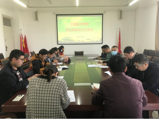 4月7日,工程技术学院在理工3402会议室召开招生宣传和就业工作会议。会议由院长彭樟林主持,学院班子成员出席会议,各系(部)、各专业负责人和毕业班辅导员参加会议。