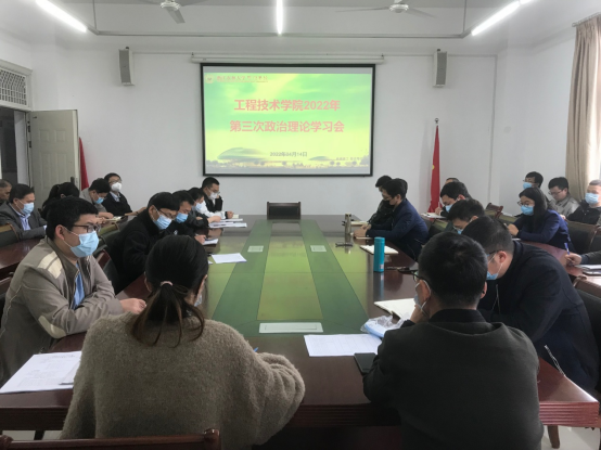 4月14日,工程技术学院在理工3402会议室召开2022年度第三次政治理论学习会,会议由院长彭樟林主持,全体教职工参加会议。