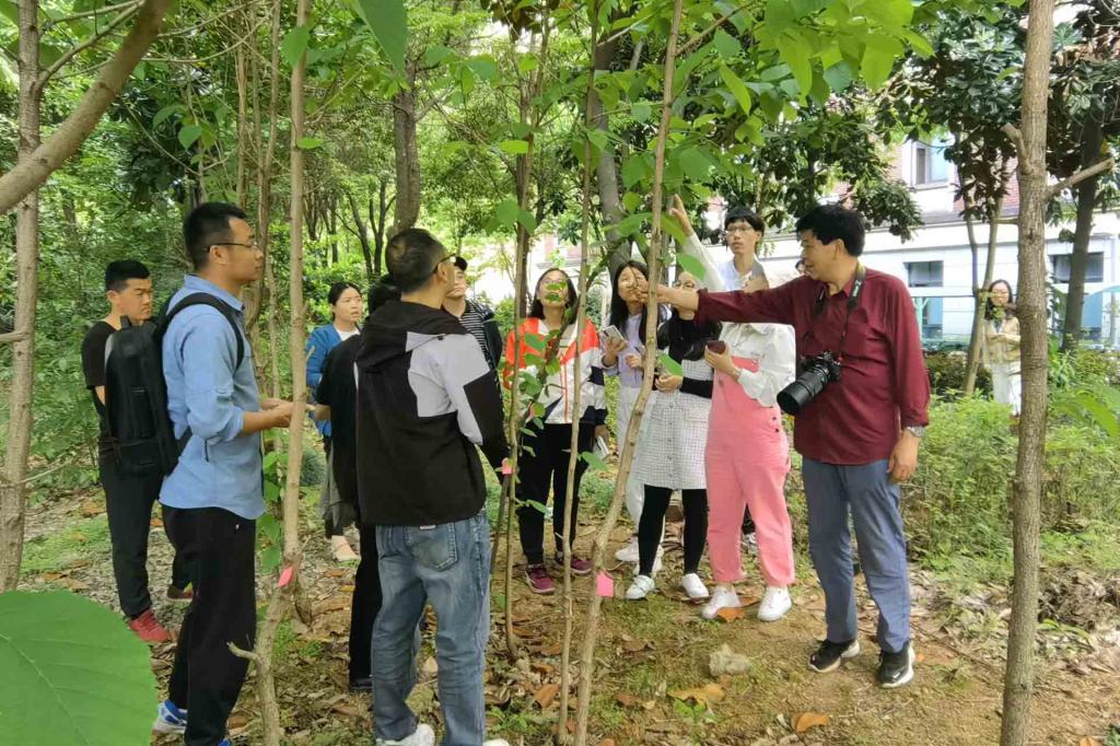 4月20日下午,威廉希尔官网省级教学名师李根有教授带领园林、环境设计、环境工程、生物等相关专业的近20名青年教师在校园内进行了一场2个多小时的植物识别现场培训活动,进一步提升了青年教师对园林植物的专业识别技能和综合运用能力。