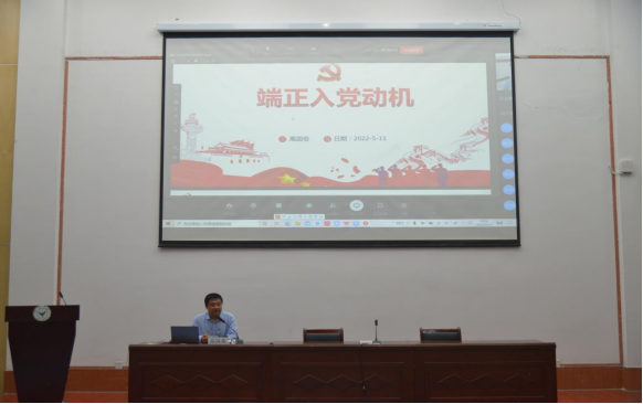 典礼结束后,高国俊为全体初级班学员作了开学第一讲——《端正入党动机》。他带领大家认识中国共产党及其百年历史,分析了在大学生中普遍存在的几种错误入党动机,指出正确的入党动机,是为了实现共产主义、全心全意为人民服务。他督促大家要增强党的知识学习力度,要增强党的宗旨学习力度,要增强党员作用发挥力度。今年恰逢中国共青团成立100周年,中国青年在新民主主义革命时期、社会主义革命和建设时期、改革开放和社会主义现代化建设新时期以及中国特色社会主义新时代四个不同历史时期展现出了该有的精神风貌。