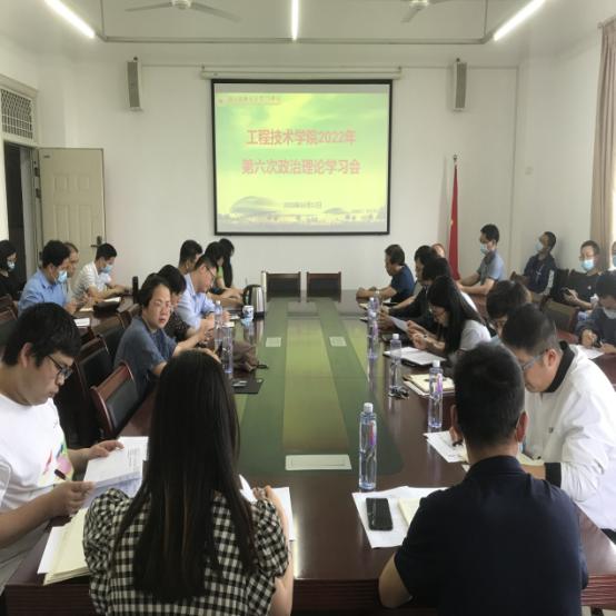6月2日,工程技术学院在理工3402会议室召开2022年度第六次政治理论学习会,会议由党总支书记周聪主持,全体教职工参加会议。