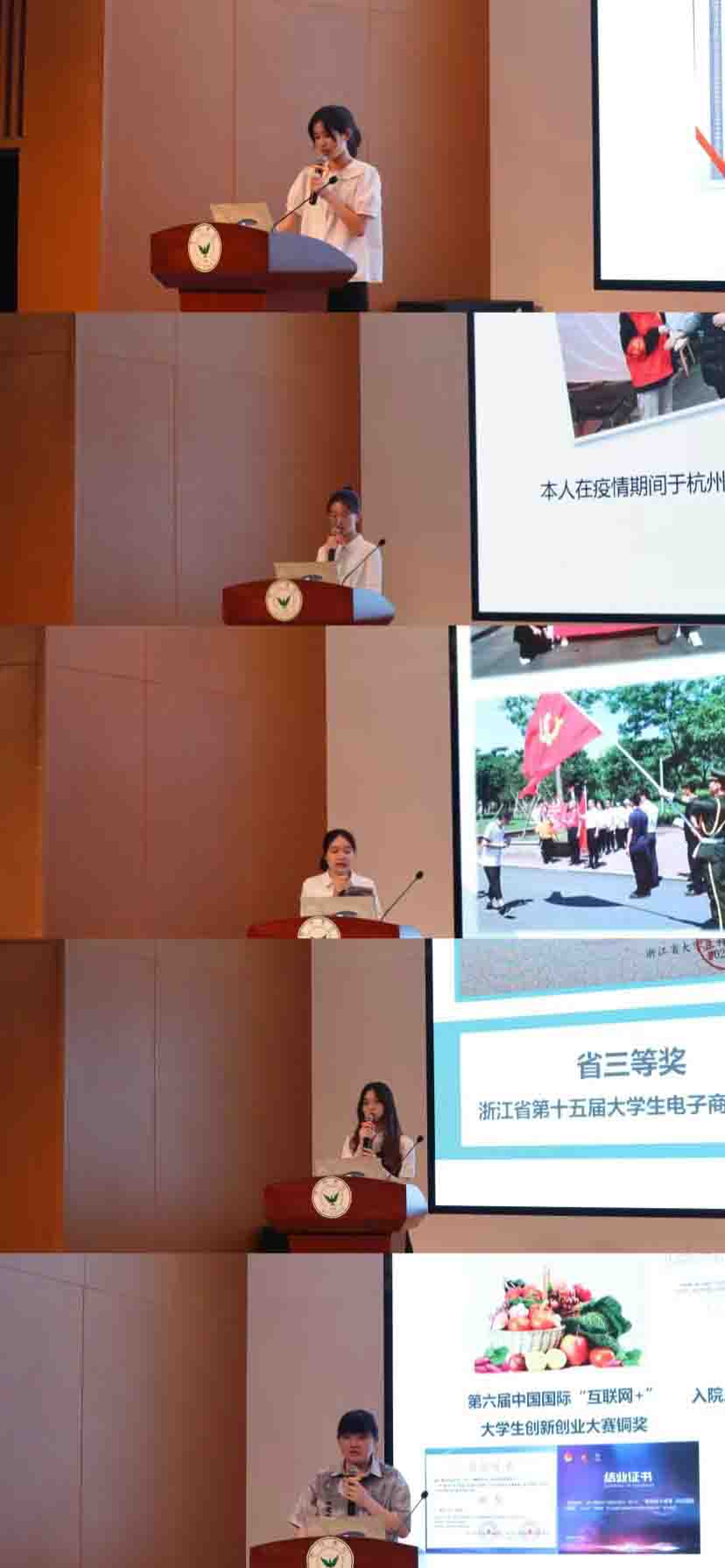 各位候选人依次以ppt汇报的形式分别从学习情况、学科竞赛、及社会实践能力等方面,展示个人在校期间的综合表现,并表达了对学院培养的感恩之情和未来回馈社会的坚定决心。各位评委分别从个人学习、党团志愿服务、未来职业规划等方面进行现场提问,各位候选人从容淡定的解答,展现了良好的个人风貌与临场作答能力。