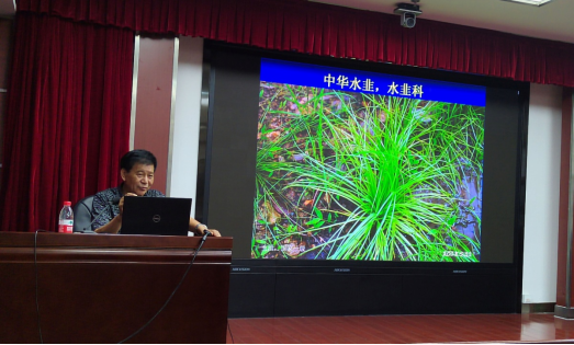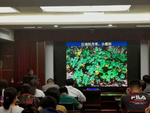 李根有教授就诸暨市植物多样性概况及保护等方面作了一场90分种的学术报告,根据多年来在诸暨野外科考收集的第一手资料,绘制了诸暨原生植物富集区域图;评估了诸暨市的植物种质资源现状和地位;重点介绍了采自诸暨的浙江马鞍树、浙江鼠李、毛花荛花、陈谋悬钩子、狭叶伏生紫堇等一批模式标本的情况;展示了诸暨市有自然分布的中华水韭、榧树、香果树、浙江七子花、江南牡丹草等40余种国家和省级重点保护的野生植物;举例说明了诸暨市的入侵植物概况;同时缅怀了诸暨籍中国老一辈植物标本采集家——陈谋和陈诗等人的献身精神和不朽贡献。