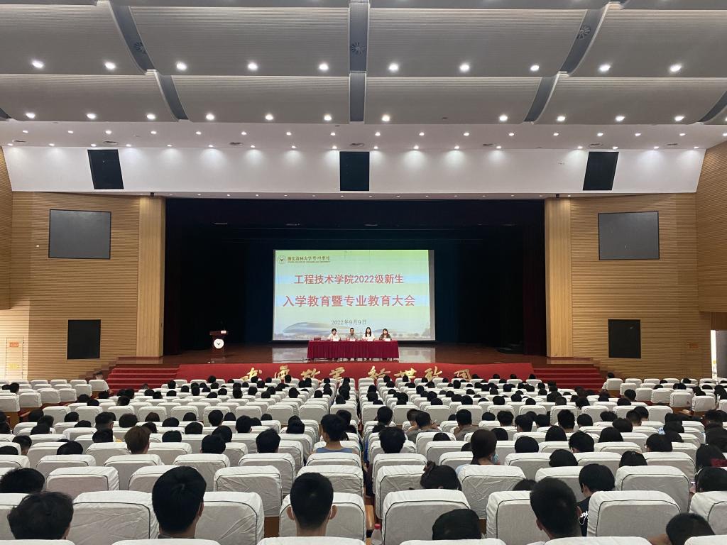 为了让2022级新生尽快适应大学生活和学习,充分了解学院办学理念,认知所学专业,懂得自我发展和成才的方向和树立长远的奋斗目标,9月9日下午,工程技术学院在活动中心召开2022级新生入学教育暨专业教育大会。学院领导班子、办公室、各专业团队负责人、全体辅导员、新生班主任、教师代表、在校生代表以及2022级全体新生参加。