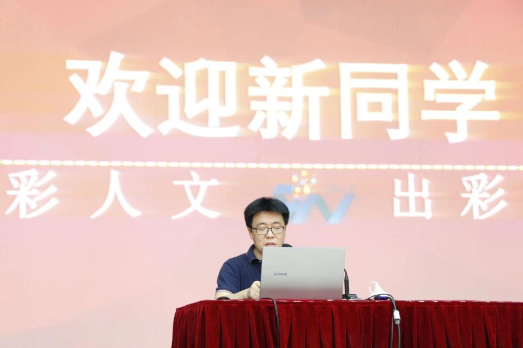 大会第一项由汪永奇副院长为新生介绍人文学院基本情况。汪院长首先向从威廉希尔官网优势学科平台与实训平台、办学特色、师资队伍、教学科研成果、多渠道校企合作、实践创新能力、人才培养成果等方面展开讲解。最后,汪院长为新生提出了三点新要求:一、用赤子之心担使命,始终和祖国共荣辱;二、以执着之心致青春,始终用自强摒弃平庸;三、凭热爱之心赴山海,始终将奋斗贯穿全程。