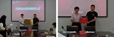 人文学院、马克思主义学院党总支书记宣王威为创新创业实践基地授牌,刘伯茹为杭州市广告协会秘书长明仁新颁发兼职教授聘书。