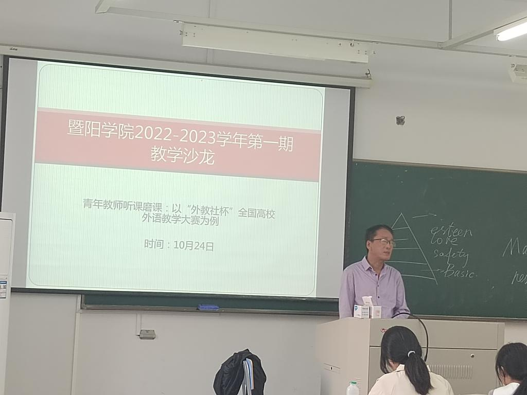 为分享教学经验,丰富老师的教学理念及教学方法,进一步提升青年教师教学能力与水平,10月24日下午,人文学院、马克思主义学院在人文2408教室举办教学沙龙。人文学院、马克思主义学院公共外语教研部李进喜老师作主题为“青年教师听课磨课:以‘外教社杯’全国高校外语教学大赛为例”的经验分享交流会,青年教师进修班第十一期学员参加。